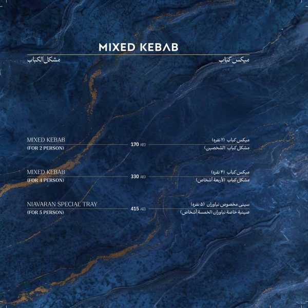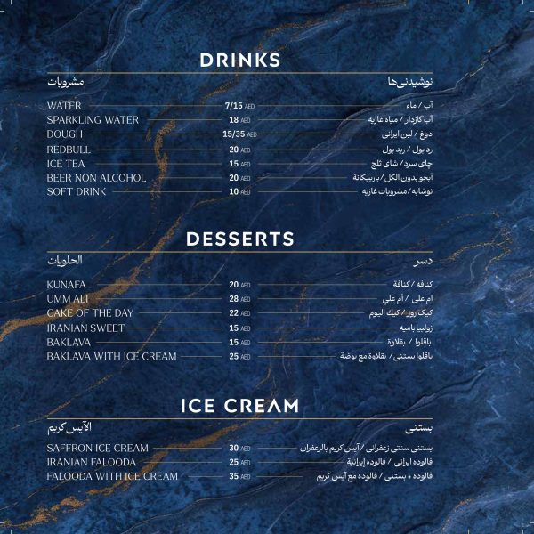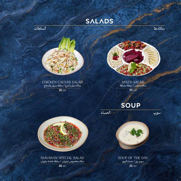 رستوران و کافه نیاوران در دبی با ارائه غذاهای اصیل ایرانی از جمله کبابهای خوشمزه، برنج عطری، خوراکهای سنتی و نوشیدنیهای دلچسب، تجربهای فراموشنشدنی از طعم و عطر ایران برای مشتریان فراهم میکند. این مجموعه با محیطی دلنشین و منویی متنوع شامل پیشغذا، غذای اصلی، فستفود، دسر و نوشیدنی، انتخابی مناسب برای علاقهمندان به غذاهای ایرانی در امارات است.