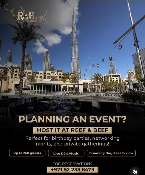 Reef & Beef، steakhouse و seafood بار ممتاز در هتلی لوکس واقع در Heritage Hotel، Downtown Dubai است. این رستوران با طراحی معماری الهامگرفته از نیویورک ۲۰s همراه با جزئیات عربی و اروپایی، فضایی گرم، شیک و دعوتکننده فراهم کرده است که شامل بخشهای مختلف: سالن اصلی، لانژ و فضای بیرونی است