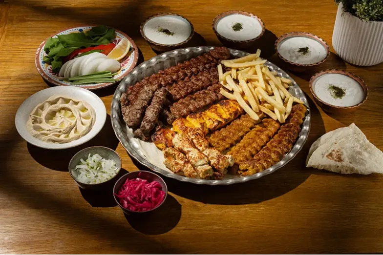 کباب کوبیده - کباب مرغ - زرشک پلو - ماهی سالمون - قورمه سبزی - تکه مرغ - جوجه ماستی - ساندویچ مرغ و گوشت و فلافل - حمص - تکه کباب لیمویی