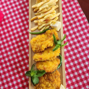 کباب مرغ با سیب زمینی سرخ شده