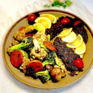 ماهی سالمون کبابی با سیب زمینی سرخ شده