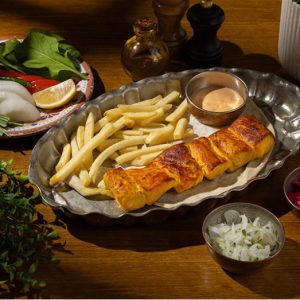 نیم کیلو گریل مخلوط با سیب زمینی سرخ کرده و نان