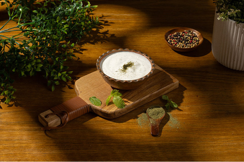 ترکیب خنک کننده و با طراوت ماست و خیار مخلوط زیبا با نعناع خشک برای