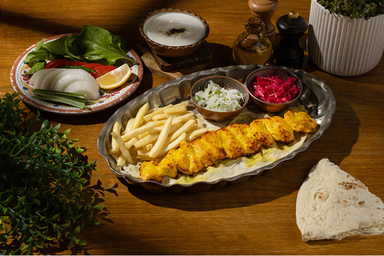 مرغ زعفران با سیب زمینی سرخ شده