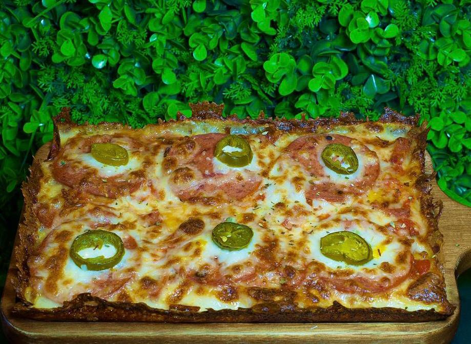 سس گوجه فرنگی، پپرونی، پنیر موزارلا، هالاپینو