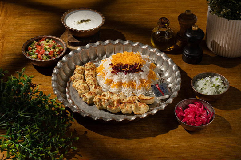 هر بشقاب شامل ۴ سیخ چیکن تیکا به همراه سالاد شیرازی + ماست و خیار + برنج + کره سرو میشود.
