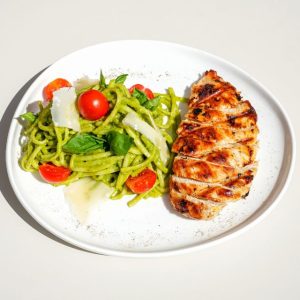 لینگوئینی پستو با مرغ گریلشده